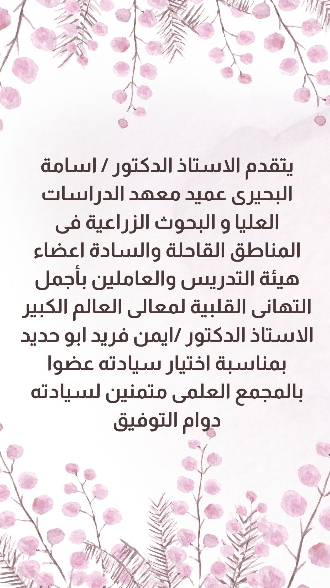 تهنئة معالي السيد الاستاذ الدكتورايمن فريد ابو حديد